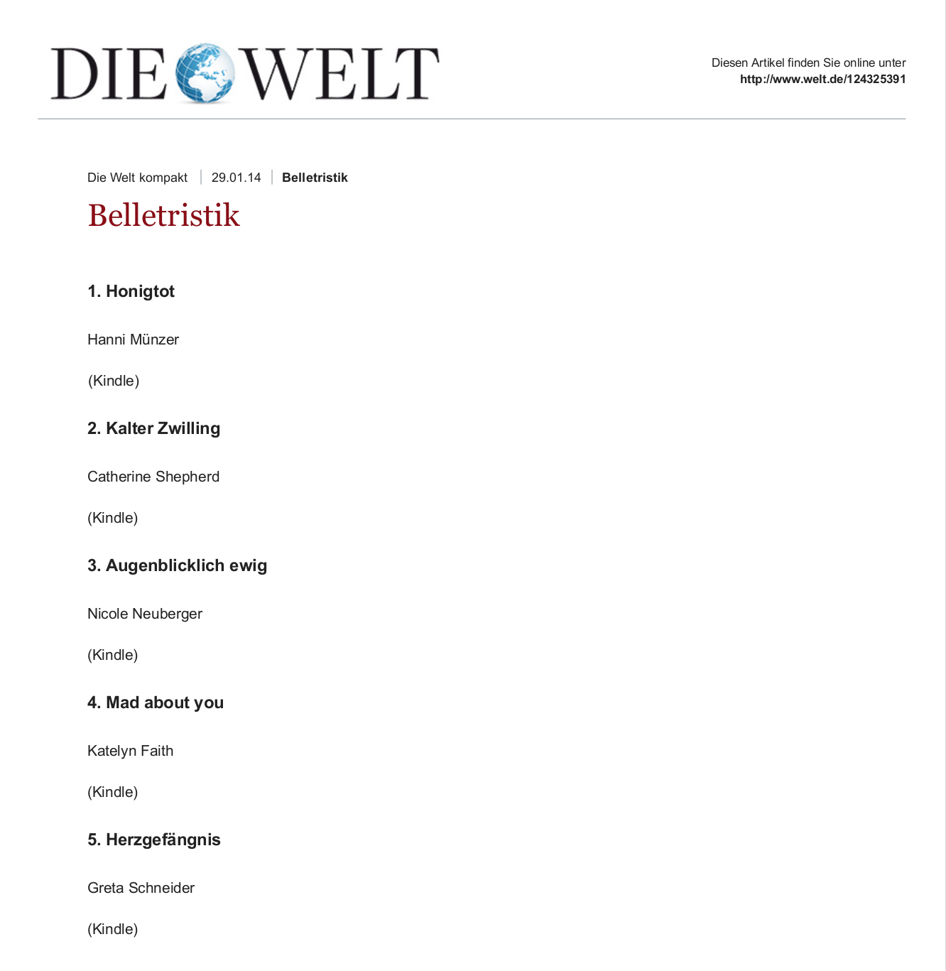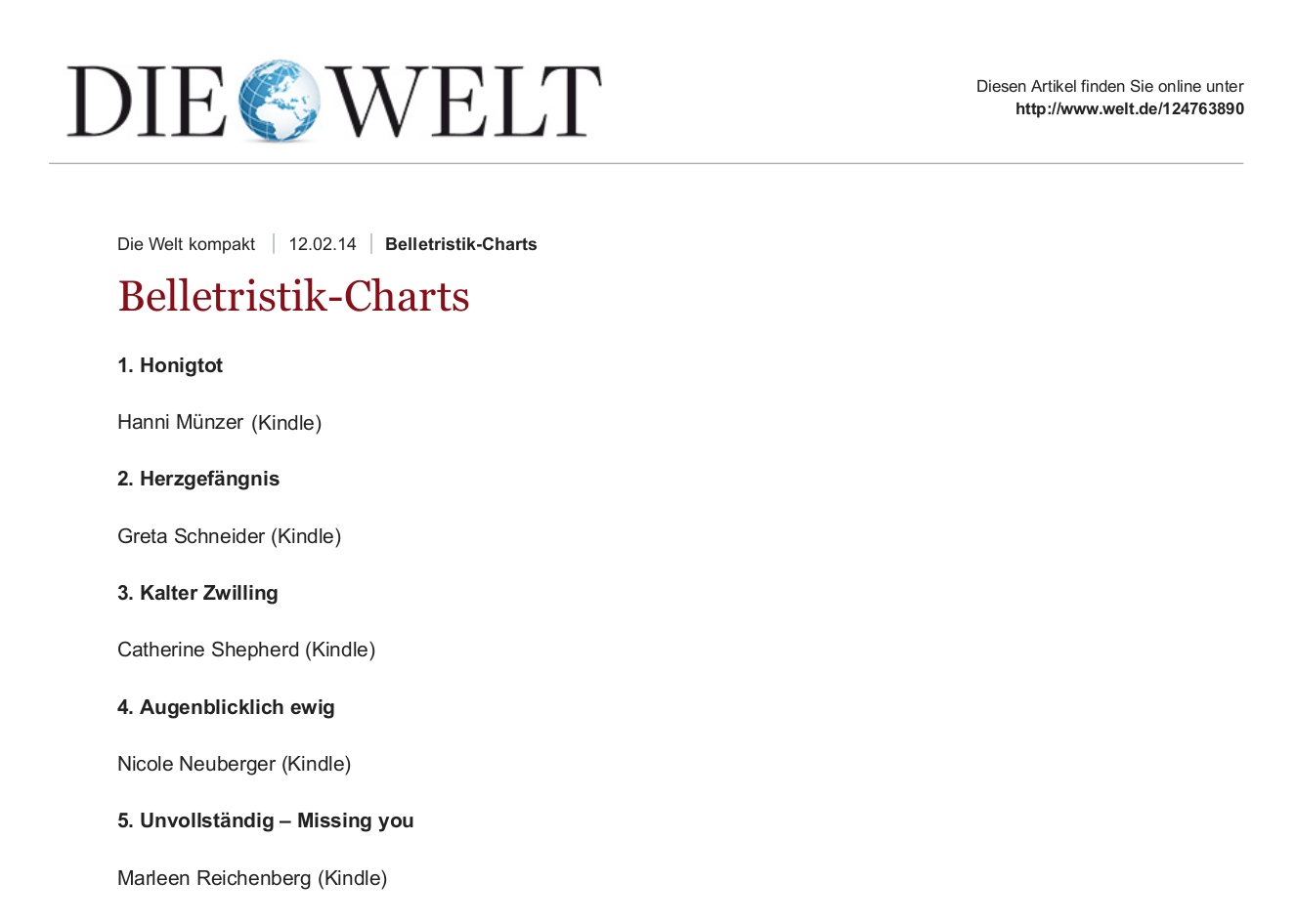 DIE WELT – Belletristik-Charts